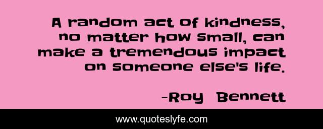 "Roy Bennett Quotes." Quoteslyfe.com, 2025. Fri. 05 Dec. 2025. <https://www.quoteslyfe.com/quote/A-random-act-of-kindness-no-matter-136221>.