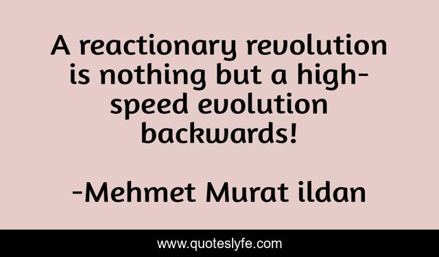 This page presents the quote "A reactionary revolution is nothing but a high-speed evolution backwards!". Author of this quote is Mehmet Murat ildan. .