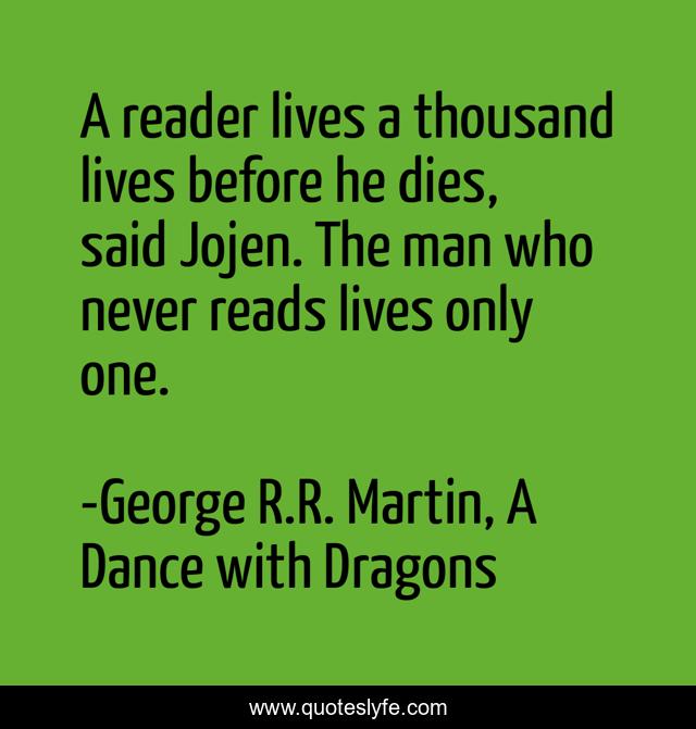"George R.R. Martin, A Dance with Dragons Quotes." Quoteslyfe.com, 2025. Mon. 08 Dec. 2025. <https://www.quoteslyfe.com/quote/A-reader-lives-a-thousand-lives-before-66440>.