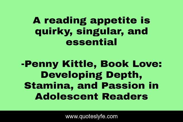 "Penny Kittle, Book Love: Developing Depth, Stamina, and Passion in Adolescent Readers Quotes." Quoteslyfe.com, 2025. Fri. 05 Dec. 2025. <https://www.quoteslyfe.com/quote/A-reading-appetite-is-quirky-singular-and-66786>.