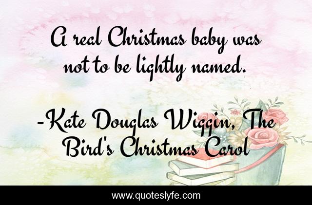This page presents the quote "A real Christmas baby was not to be lightly named.". Author of this quote is Kate Douglas Wiggin, The Bird's Christmas Carol. This quote is about christmas, names,.