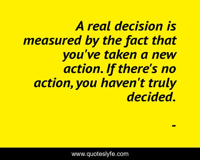 This page presents the quote "A real decision is measured by the fact that you've taken a new action. If there's no action, you haven't truly decided.". Author of this quote is . This quote is about enthusiasm, inspirational,.