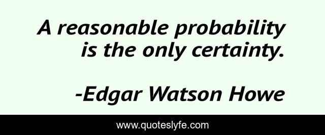 "Edgar Watson Howe Quotes." Quoteslyfe.com, 2025. Fri. 05 Dec. 2025. <https://www.quoteslyfe.com/quote/A-reasonable-probability-is-the-only-certainty-263379>.