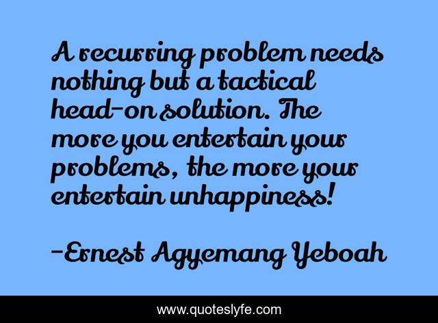 A recurring problem needs nothing but a tactical head-on solution. The more you entertain your problems, the more your entertain unhappiness!