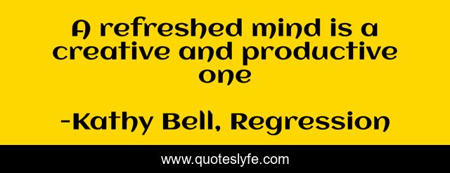 This page presents the quote "A refreshed mind is a creative and productive one". Author of this quote is Kathy Bell, Regression. .