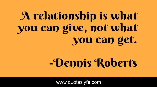 This page presents the quote "A relationship is what you can give, not what you can get.". Author of this quote is Dennis Roberts. .