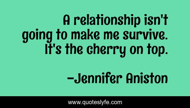 This page presents the quote "A relationship isn't going to make me survive. It's the cherry on top.". Author of this quote is Jennifer Aniston. This quote is about me, survive, cherry,.