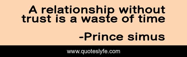 This page presents the quote "A relationship without trust is a waste of time". Author of this quote is Prince simus. .
