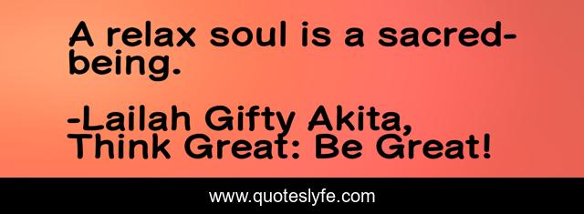 "Lailah Gifty Akita, Think Great: Be Great! Quotes." Quoteslyfe.com, 2025. Tue. 09 Dec. 2025. <https://www.quoteslyfe.com/quote/A-relax-soul-is-a-sacred-being-105435>.