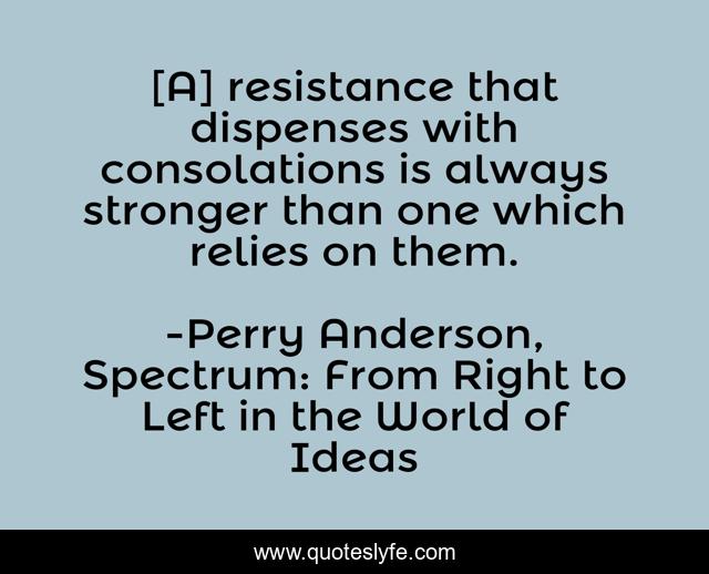 "Perry Anderson, Spectrum: From Right to Left in the World of Ideas Quotes." Quoteslyfe.com, 2025. Sun. 07 Dec. 2025. <https://www.quoteslyfe.com/quote/A-resistance-that-dispenses-with-consolations-is-56931>.