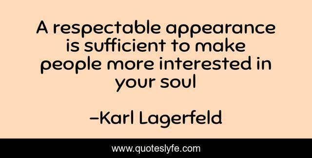 This page presents the quote "A respectable appearance is sufficient to make people more interested in your soul". Author of this quote is Karl Lagerfeld. This quote is about beautiful, designer, beauty, people, chic, soul, appareance, chanel, fashion,.