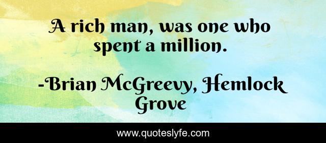 This page presents the quote "A rich man, was one who spent a million.". Author of this quote is Brian McGreevy, Hemlock Grove. This quote is about million, spent, rich, man,.
