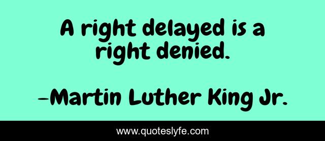 "Martin Luther King Jr. Quotes." Quoteslyfe.com, 2025. Sun. 07 Dec. 2025. <https://www.quoteslyfe.com/quote/A-right-delayed-is-a-right-denied-191045>.