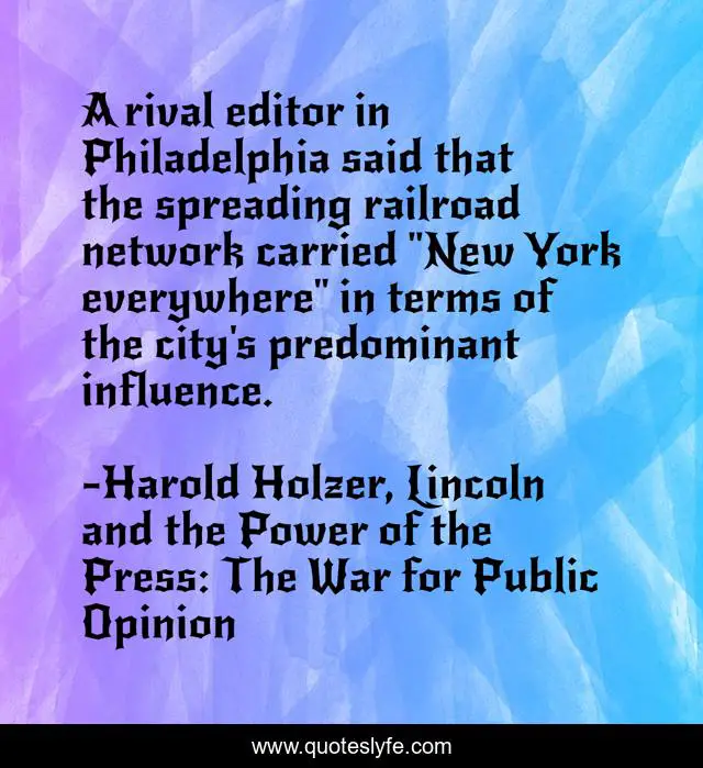 "Harold Holzer, Lincoln and the Power of the Press: The War for Public Opinion Quotes." Quoteslyfe.com, 2025. Fri. 05 Dec. 2025. <https://www.quoteslyfe.com/quote/A-rival-editor-in-Philadelphia-said-that-185322>.