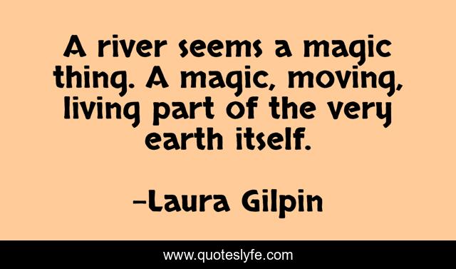 This page presents the quote "A river seems a magic thing. A magic, moving, living part of the very earth itself.". Author of this quote is Laura Gilpin. This quote is about river, magic,.