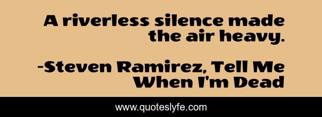 "Steven Ramirez, Tell Me When I'm Dead Quotes." Quoteslyfe.com, 2025. Mon. 08 Dec. 2025. <https://www.quoteslyfe.com/quote/A-riverless-silence-made-the-air-heavy-156485>.