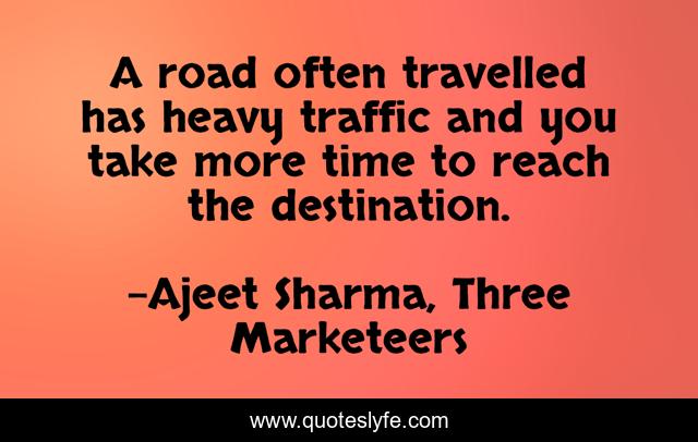 "Ajeet Sharma, Three Marketeers Quotes." Quoteslyfe.com, 2025. Sat. 06 Dec. 2025. <https://www.quoteslyfe.com/quote/A-road-often-travelled-has-heavy-traffic-32517>.