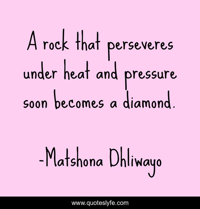 "Matshona Dhliwayo Quotes." Quoteslyfe.com, 2025. Mon. 08 Dec. 2025. <https://www.quoteslyfe.com/quote/A-rock-that-perseveres-under-heat-and-58263>.