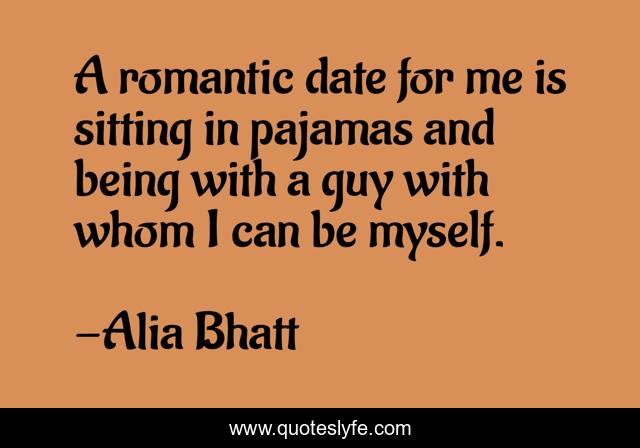 This page presents the quote "A romantic date for me is sitting in pajamas and being with a guy with whom I can be myself.". Author of this quote is Alia Bhatt. This quote is about me, myself, i can,.