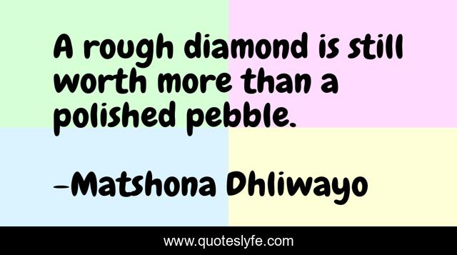 "Matshona Dhliwayo Quotes." Quoteslyfe.com, 2025. Mon. 08 Dec. 2025. <https://www.quoteslyfe.com/quote/A-rough-diamond-is-still-worth-more-58121>.