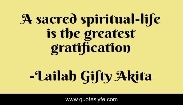 This page presents the quote "A sacred spiritual-life is the greatest gratification". Author of this quote is Lailah Gifty Akita. This quote is about happiness, spirituality, life, sacred, simple-life,.