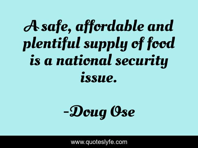 This page presents the quote "A safe, affordable and plentiful supply of food is a national security issue.". Author of this quote is Doug Ose. This quote is about security, safe,.