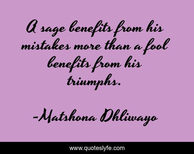 "Matshona Dhliwayo Quotes." Quoteslyfe.com, 2025. Sat. 06 Dec. 2025. <https://www.quoteslyfe.com/quote/A-sage-benefits-from-his-mistakes-more-250136>.