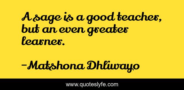 "Matshona Dhliwayo Quotes." Quoteslyfe.com, 2025. Fri. 05 Dec. 2025. <https://www.quoteslyfe.com/quote/A-sage-is-a-good-teacher-but-250133>.