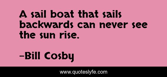 This page presents the quote "A sail boat that sails backwards can never see the sun rise.". Author of this quote is Bill Cosby. This quote is about sailboat, inspirational, enthusiasm,.
