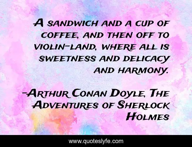 "Arthur Conan Doyle, The Adventures of Sherlock Holmes Quotes." Quoteslyfe.com, 2025. Tue. 09 Dec. 2025. <https://www.quoteslyfe.com/quote/A-sandwich-and-a-cup-of-coffee-16721>.