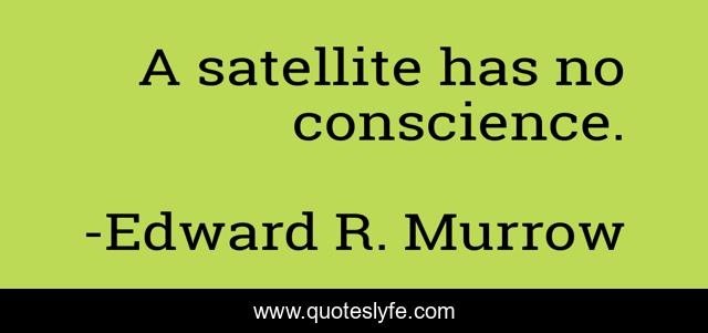 This page presents the quote "A satellite has no conscience.". Author of this quote is Edward R. Murrow. This quote is about conscience, satellite,.