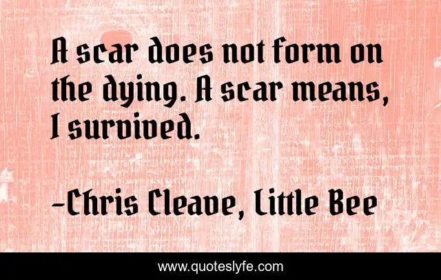 "Chris Cleave, Little Bee Quotes." Quoteslyfe.com, 2025. Fri. 05 Dec. 2025. <https://www.quoteslyfe.com/quote/A-scar-does-not-form-on-the-196010>.