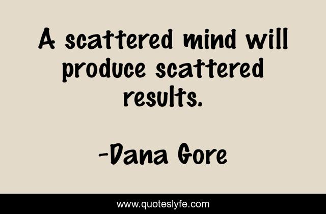 "Dana Gore Quotes." Quoteslyfe.com, 2025. Fri. 05 Dec. 2025. <https://www.quoteslyfe.com/quote/A-scattered-mind-will-produce-scattered-results-108307>.