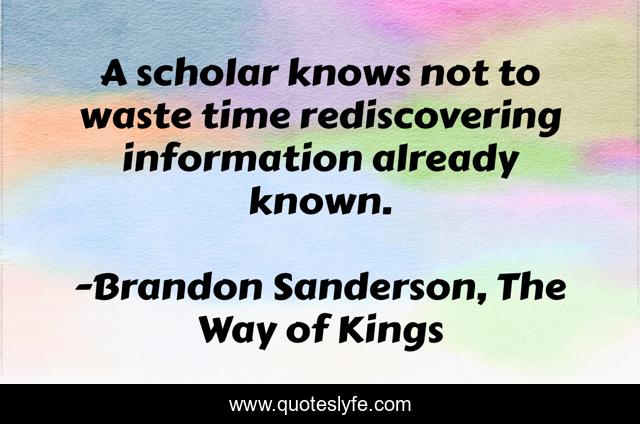 This page presents the quote "A scholar knows not to waste time rediscovering information already known.". Author of this quote is Brandon Sanderson, The Way of Kings. This quote is about fantasy, science,.