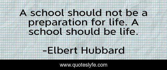 "Elbert Hubbard Quotes." Quoteslyfe.com, 2025. Sat. 06 Dec. 2025. <https://www.quoteslyfe.com/quote/A-school-should-not-be-a-preparation-105181>.