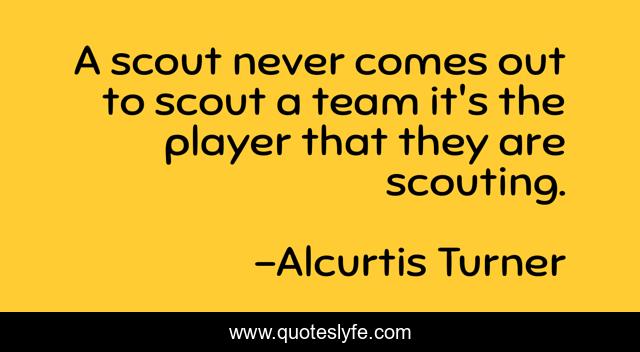 "Alcurtis Turner Quotes." Quoteslyfe.com, 2025. Sat. 06 Dec. 2025. <https://www.quoteslyfe.com/quote/A-scout-never-comes-out-to-scout-244161>.