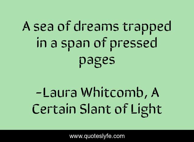 "Laura Whitcomb, A Certain Slant of Light Quotes." Quoteslyfe.com, 2025. Fri. 05 Dec. 2025. <https://www.quoteslyfe.com/quote/A-sea-of-dreams-trapped-in-a-178529>.
