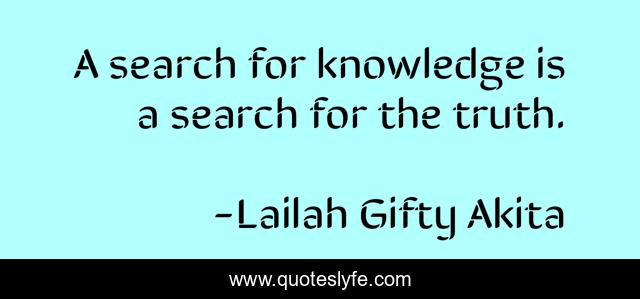 This page presents the quote "A search for knowledge is a search for the truth.". Author of this quote is Lailah Gifty Akita. This quote is about information, knowledge, seeking, wise-sayings, inspirational, truth, enthusiasm, education,.