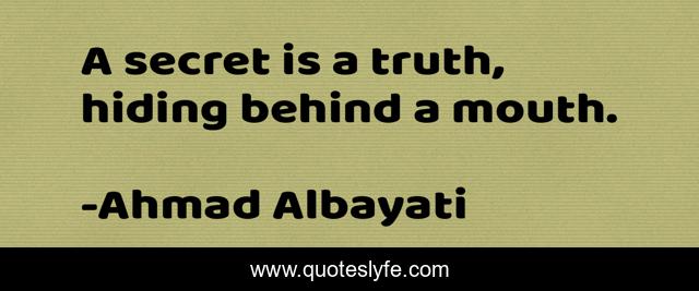 This page presents the quote "A secret is a truth, hiding behind a mouth.". Author of this quote is Ahmad Albayati. .