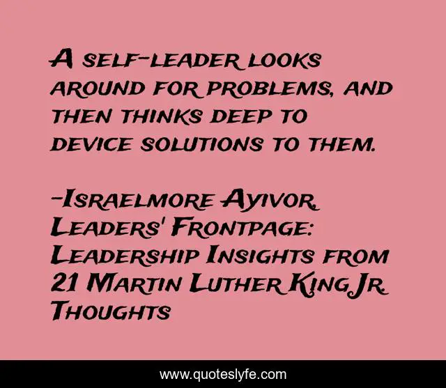 "Israelmore Ayivor, Leaders' Frontpage: Leadership Insights from 21 Martin Luther King Jr. Thoughts Quotes." Quoteslyfe.com, 2025. Sat. 06 Dec. 2025. <https://www.quoteslyfe.com/quote/A-self-leader-looks-around-for-problems-64240>.