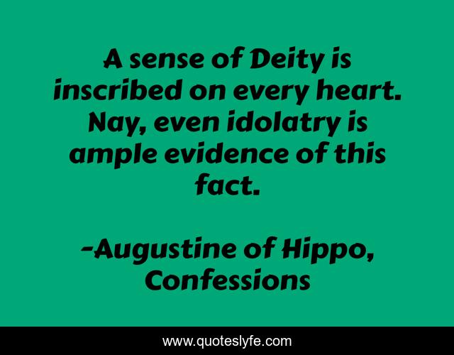 This page presents the quote "A sense of Deity is inscribed on every heart. Nay, even idolatry is ample evidence of this fact.". Author of this quote is Augustine of Hippo, Confessions. This quote is about transcendence, worship,.