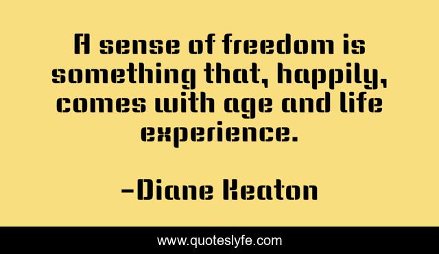 This page presents the quote "A sense of freedom is something that, happily, comes with age and life experience.". Author of this quote is Diane Keaton. This quote is about life, experience, happiness, sense-of-freedom,.