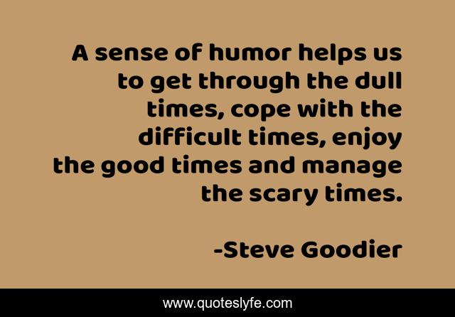 This page presents the quote "A sense of humor helps us to get through the dull times, cope with the difficult times, enjoy the good times and manage the scary times.". Author of this quote is Steve Goodier. This quote is about humor, coping, joy, sense-of-humor, joyfulness, laughing, laugh, enjoyment-of-life, difficuties,.