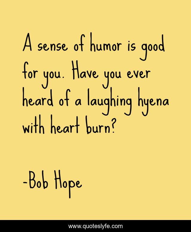 This page presents the quote "A sense of humor is good for you. Have you ever heard of a laughing hyena with heart burn?". Author of this quote is Bob Hope. This quote is about heart, good,.