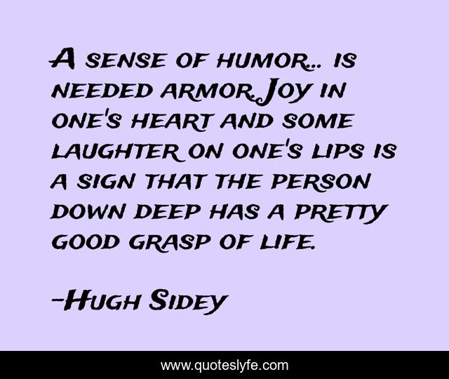 This page presents the quote "A sense of humor... is needed armor. Joy in one's heart and some laughter on one's lips is a sign that the person down deep has a pretty good grasp of life.". Author of this quote is Hugh Sidey. This quote is about life, good, deep,.