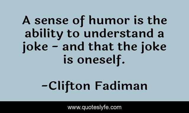 This page presents the quote "A sense of humor is the ability to understand a joke - and that the joke is oneself.". Author of this quote is Clifton Fadiman. This quote is about sense of humor, understand,.