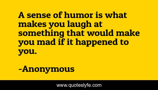 This page presents the quote "A sense of humor is what makes you laugh at something that would make you mad if it happened to you.". Author of this quote is Anonymous. This quote is about yous, thank, closures,.