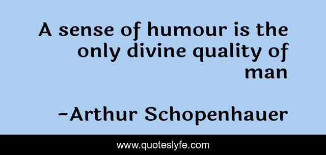 This page presents the quote "A sense of humour is the only divine quality of man". Author of this quote is Arthur Schopenhauer. This quote is about humour, god, sense, divine, houmor, man,.