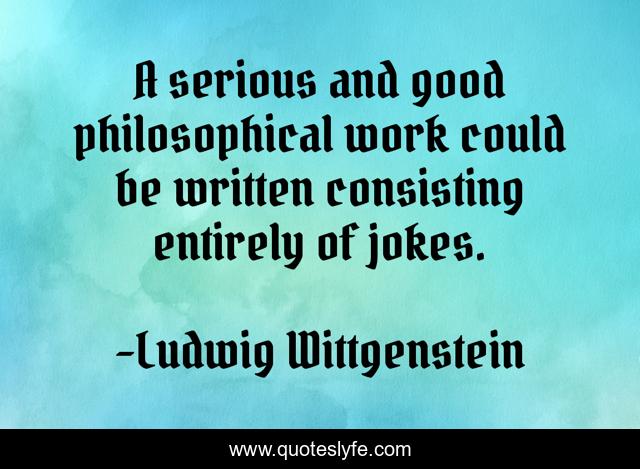 This page presents the quote "A serious and good philosophical work could be written consisting entirely of jokes.". Author of this quote is Ludwig Wittgenstein. .