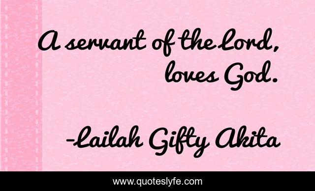 This page presents the quote "A servant of the Lord, loves God.". Author of this quote is Lailah Gifty Akita. This quote is about faith, inspiring, christian, servant, god, lord,.